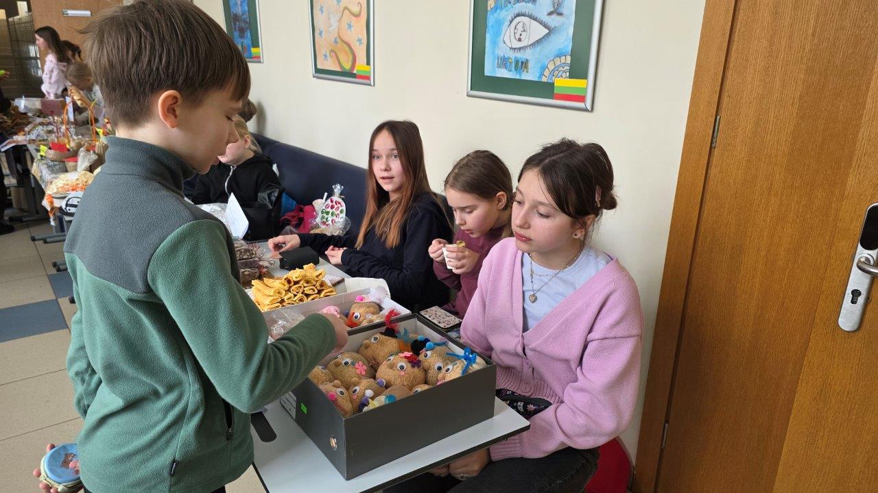Kovo 6 d. gimnazijoje vyko smagi ir spalvinga Kaziuko mugė, kurioje dalyvavo pradinių klasių mokiniai. Mažieji prekybininkai patys gamino įvairius dirbinius, kepinius bei kitas gėrybes ir jas siūlė mugės lankytojams. Mugėje netrūko šurmulio, geros nuotaikos ir kūrybiškumo. Lankytojai galėjo įsigyti rankų darbo papuošalų, saldžių skanėstų, įvairių dekoracijų ir kitų įdomių gaminių. Mokiniai turėjo progą ne tik parodyti savo talentus, bet ir ugdė verslumo, bendravimo bei bendradarbiavimo įgūdžius.