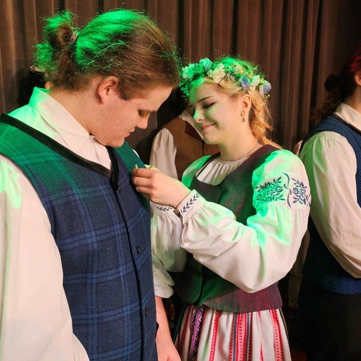 2025 m. vasario 14 d. Vilniaus lietuvių namai minėjo Vasario 16-ąją - Lietuvos valstybės atkūrimo dieną. Švęsdami svarbiausią modernios Lietuvos Vasario 16 - osios šventę, pasinėrėme į tradicinių šokių sūkurį. Juk šokis – tai ne tik judesiai, lydimi muzikos. Tai mūsų tautos istorijos dalis, paveldas, kuris jungia praeitį su dabartimi ir kuria tiltą į ateitį. Šiais žodžiais renginio vedėjai Rapolas Lukša ir Rugilė Radžiūnaitė pradėjo šventinį renginį „Švęskime laisvi“. Jame dalyvavo Riešės gimnazijos tautinių šokių kolektyvas „Sūkurėlis” ir Vilniaus lietuvių namų tautinių šokių kolektyvas ,,Volungė”. Renginio metu kolektyvo „Sūkurėlis” dalyviai įteikė Vilniaus lietuvių namų mokiniams simbolines širdeles su trispalve, kurias pagamino Riešės gimnazijos mokiniai.