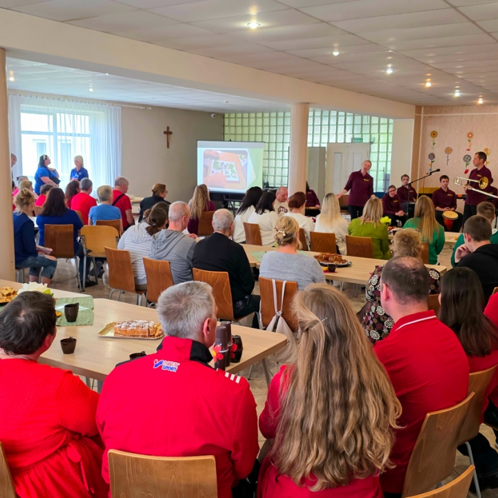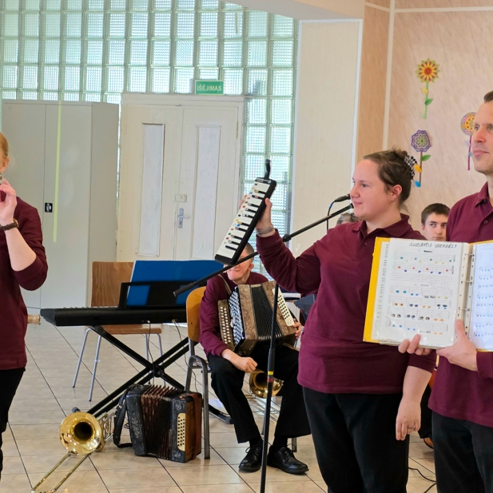 Spalio 9-ąją IIaG ir IVbG klasių gimnazistai dalyvavo ir savanoriavo Marijampolės specialiųjų socialinės globos namų renginyje „Muzika sielai, spalvos gyvenimui“. Tai buvo ypatingas susitikimas, kupinas šilumos, muzikos ir nuoširdžių emocijų, stiprinantis žmonių su negalia bendrystę. Renginį papuošė draugijos Guboja orkestras „Muzikos spalvos“, sukūręs išskirtinę atmosferą. Džiugu, kad prie orkestro prisijungė ir mūsų mokiniai – kartu muzikuodami jie dalijosi ne tik garsais, bet ir gerumu. Tokie susitikimai primena, kad muzika sujungia žmones, o savanorystė praturtina tiek tuos, kurie padeda, tiek tuos, kuriems pagalba skiriama.