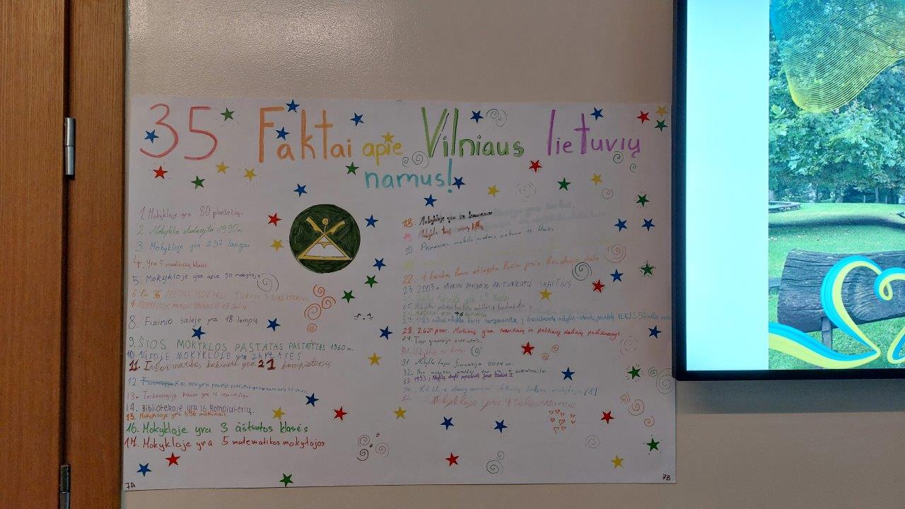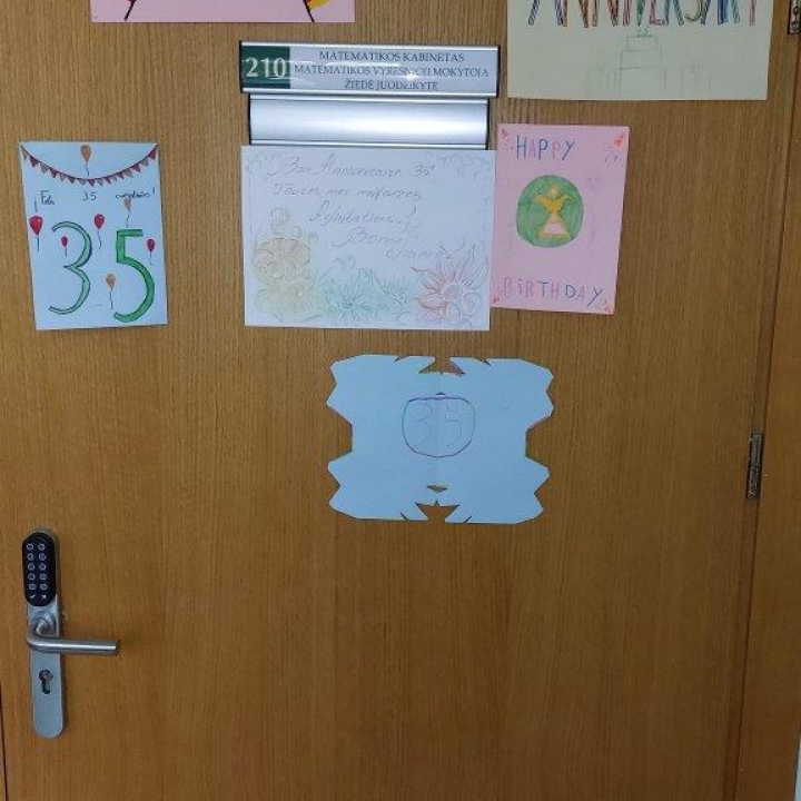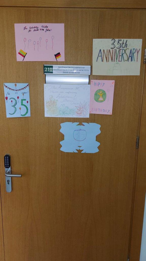 Nuo rugsėjo 29 d. iki spalio 3 d. visa gimnazijos bendruomenė aktyviai dalyvavo įvairiausiuose renginiuose. Per šventinę savaitę įvyko daigiau nei 100 netradicinių pamokų. Buvo organizuotos įvairiausios parodos, viktorinos skirtingų amžiaus grupių mokiniams, susitikimai su alumnais, koncertas. Daug džiaugsmo, šypsenų ir jautrių akimirkų. Šį kartą neliko nei vieno bendruomenės nario be dovanos ir torto gabalėlio.