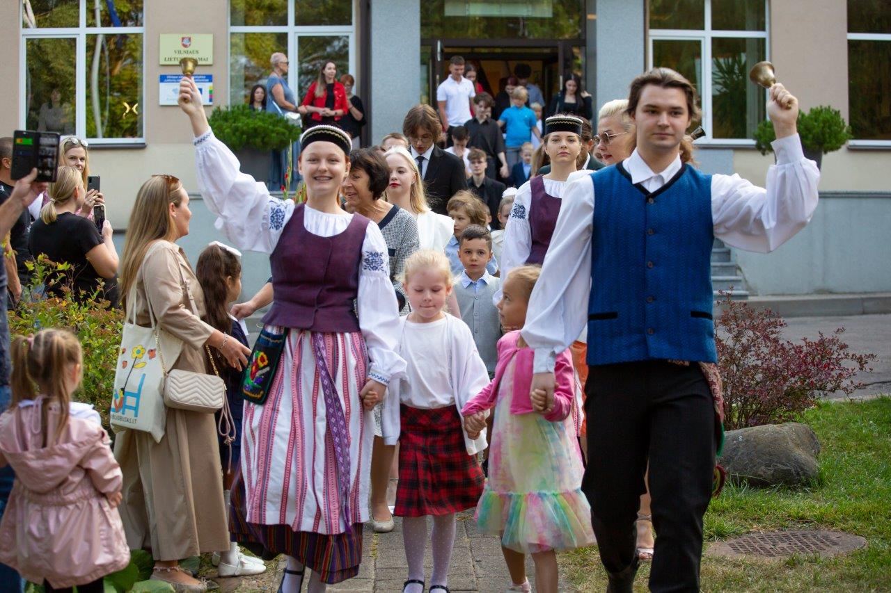 2024 m. Mokslo ir žinių šventė Vilniaus lietuvių namuose prasidėjo 9 val. pirmokėlių, lydimų IV G klasės mokinių, pasirodymu gimnazijos kieme ir, žinoma, iškilmingu valstybinės ir Vilniaus lietuvių namų vėliavų įnešimu. Šventėje dalyvavo ir sveikinimo žodį tarė Lietuvos Respublikos Seimo narė Dalia Asanavičiūtė, Lietuvos Respublikos Seimo narės Angelės Jakavonytės patarėja Augustė Dumčiūtė, Švietimo, mokslo ir sporto ministerijos Užsienio lietuvių skyriaus vyriausioji specialistė Daiva Žemgulienė ir buvę Vilniaus lietuvių namų mokiniai Gabriela Avalos Liesinskas ir Antanas Paukshtis. Gimnazijos direktorius Gintautas Rudzinskas sveikino visus, gausiai susirinkusius, ir įteikė padėkos raštus praėjusiais metais geriausiai besimokiusiems mokiniams bei tradicines dovanas gimnazijos pirmokėliams. Šiais metasi priesaiką iškilmingai perskaitė lietuvių kalbos mokytoja Vilma Vilkytė- Žemaitaitienė ir IIIb G kl. mokinė Joana Jarmolovič. Džiugino Vilniaus lietuvių namų mokinių Valery ir Viktorijos atliekamos dainos, smagiai trypė Šimtmečio Lietuvos dainų šventės dalyviai, tautinių šokių kolektyvo „Volungė“ šokėjėliai. Branginti kiekvieną akimirką ir patirti bent truputį šventės kasdien... linkėjo renginio vedėjai Ineta ir Vidmantas visiems Vilniaus lietuvių namų bendruomenės nariams ir svečiams.