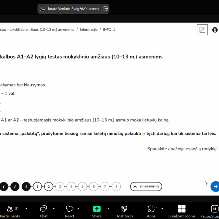 Vasario 10 d. vyko nuotolinė konsultacija dėl lietuvių kalbos lygio nustatymo testavimo